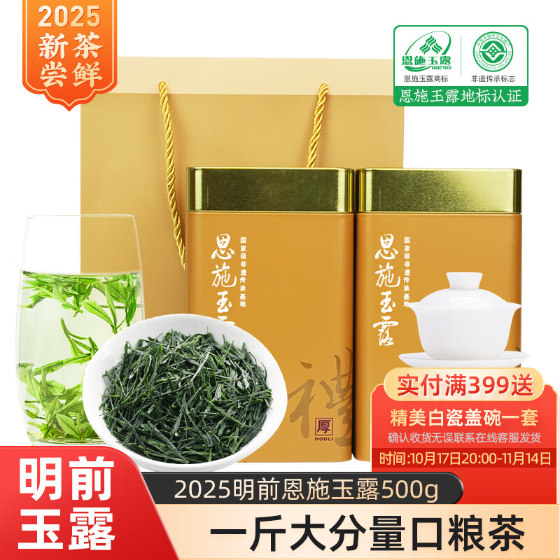 茶马世家2025新茶恩施玉露绿茶500g富硒产区蒸青茶叶自己喝年货节送礼品袋