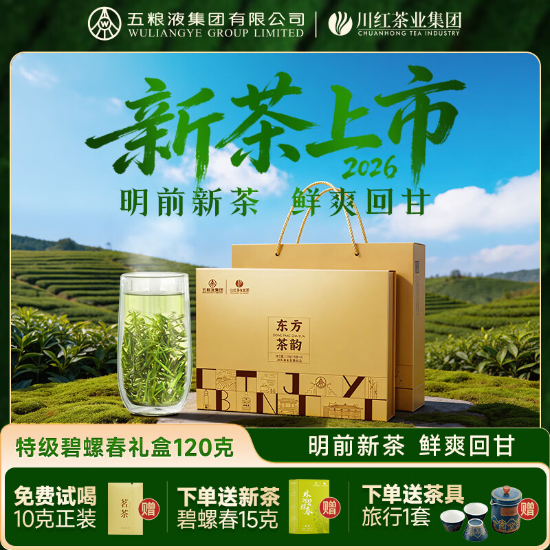 川红 2026新茶现货 特级碧螺春 嫩芽浓香型茶叶送礼佳品 东方茶韵礼盒(送手提袋) 120g*1盒