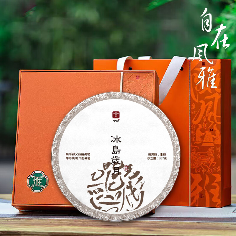 言印冰岛岁月普洱茶 经典生普茶陈年老普洱茶饼茶礼 357g*1饼/礼盒装