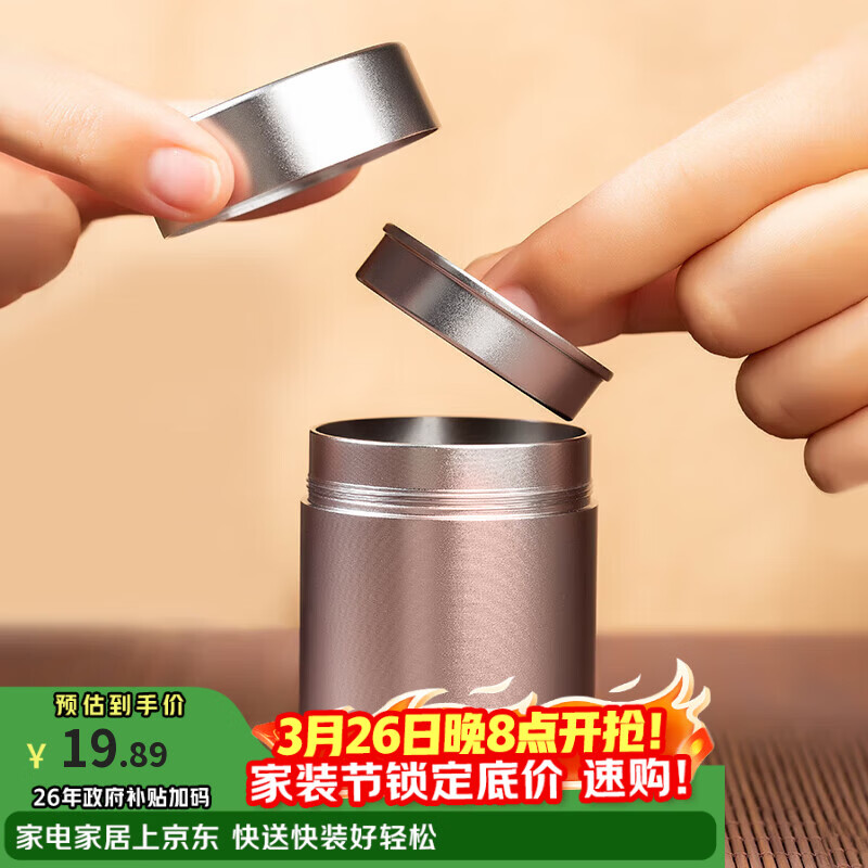 逸居客(YIJUKE)双盖便携茶叶罐小号密封茶叶盒铝合金茶罐茶叶分装盒