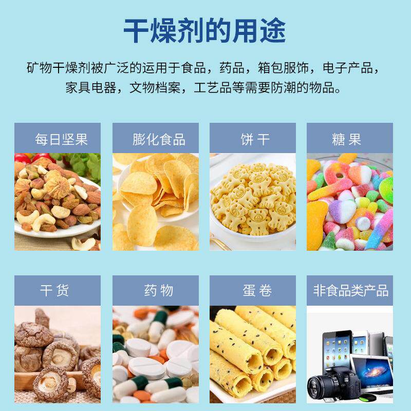 1防克YDT硅胶干燥剂吸湿潮防霉鞋食品茶叶厂电子五金服装家防潮服