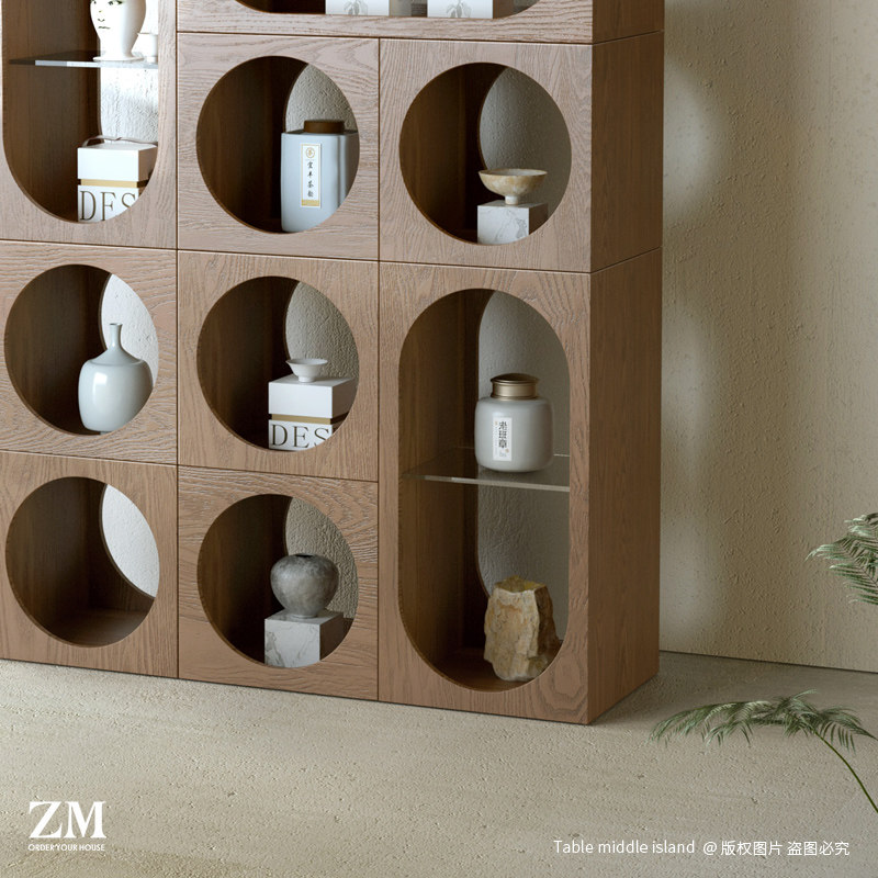 新中式中岛柜展示柜流水台茶叶展示架茶具摆件展示柜多层货架实木