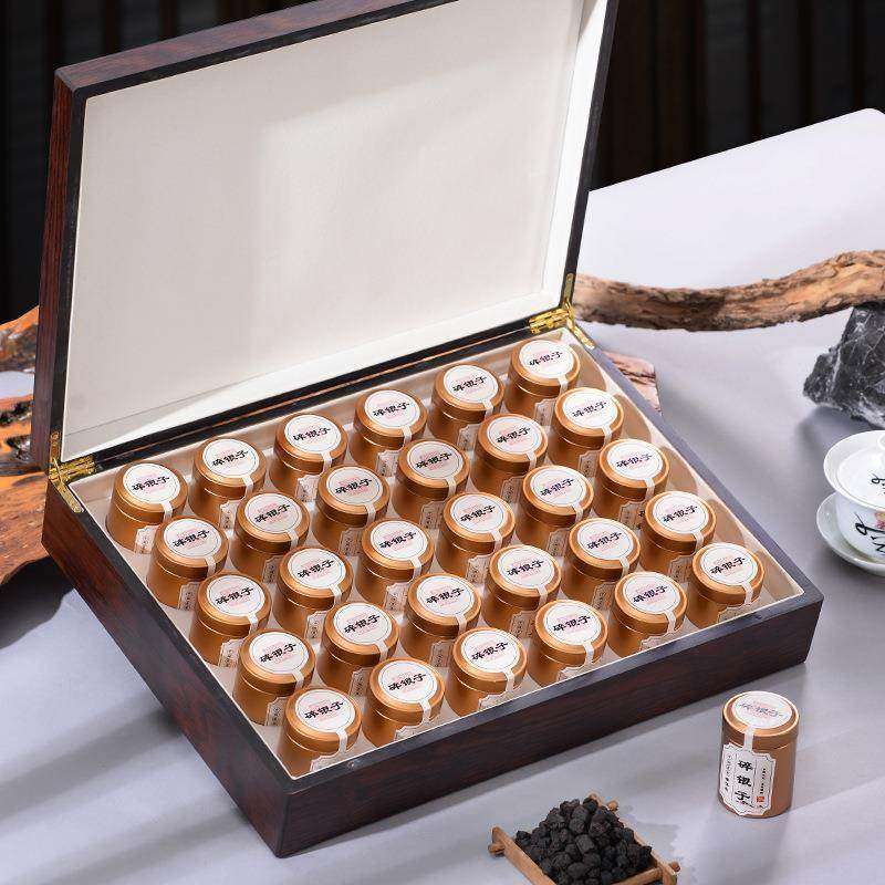 武夷山蜜香红茶金骏眉茶叶黑檀木盒礼盒装小金罐30罐送礼武夷红茶