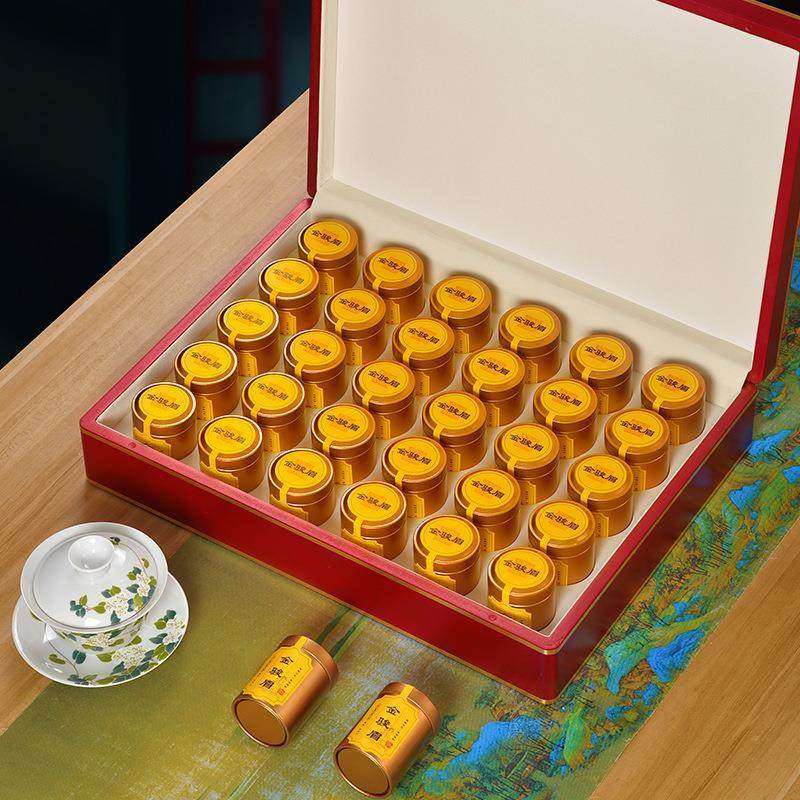 武夷山春茶蜜香红茶金骏眉茶叶木盒礼盒装小金罐30罐送礼武夷山茶