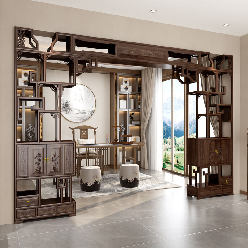 炫彩小家月亮门博古架新中式仿古实亮门多宝阁厅圆形拱门茶叶月洞