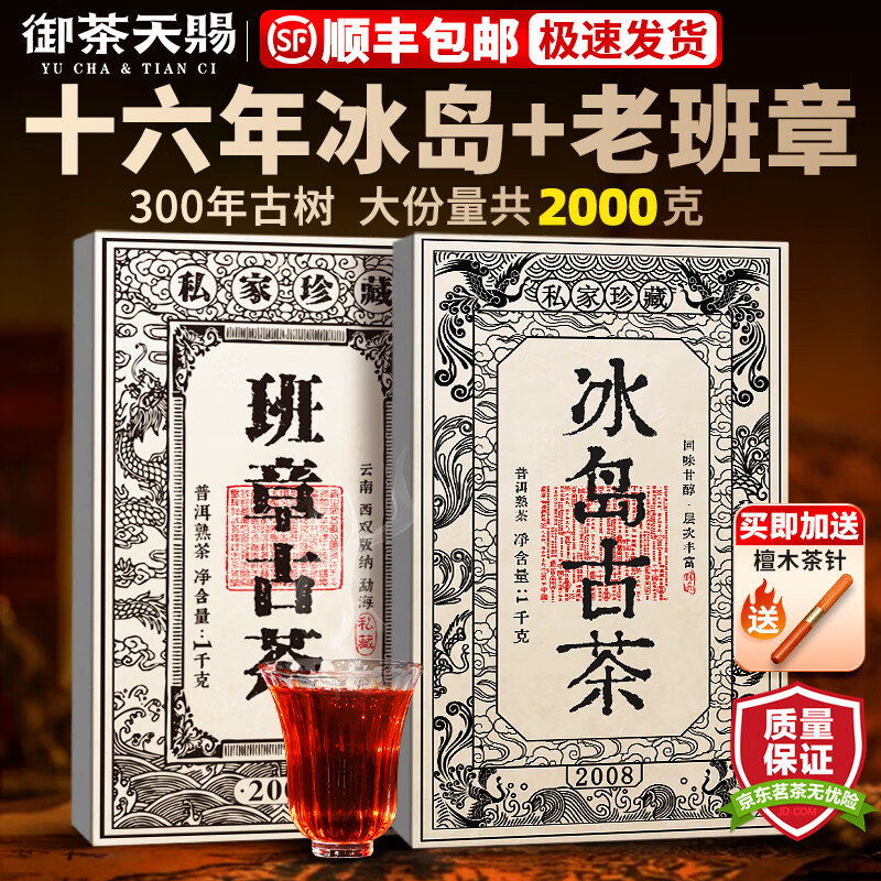 御茶天赐老班章冰岛普洱茶熟茶砖十年以上陈年熟普洱砖茶云南古树茶叶送礼 【十六年冰岛+老班章】共2000g