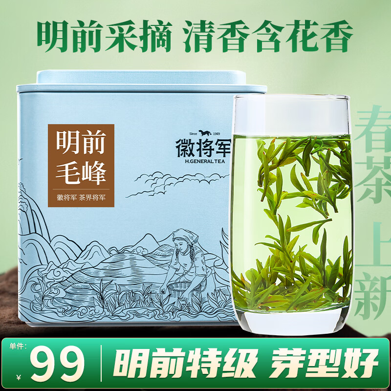 徽将军绿茶2025新茶黄山毛峰明前特级100g兰香安徽毛尖雀舌茶叶自己喝送