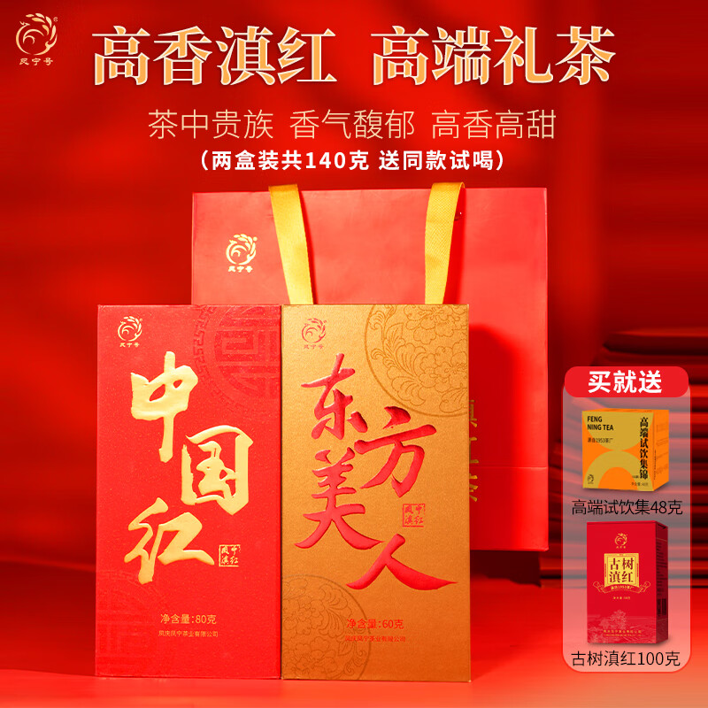 凤宁号红茶中国红滇红茶礼盒云南凤庆高香高端滇红茶叶礼盒送礼2025新茶 2款礼盒组合装140g