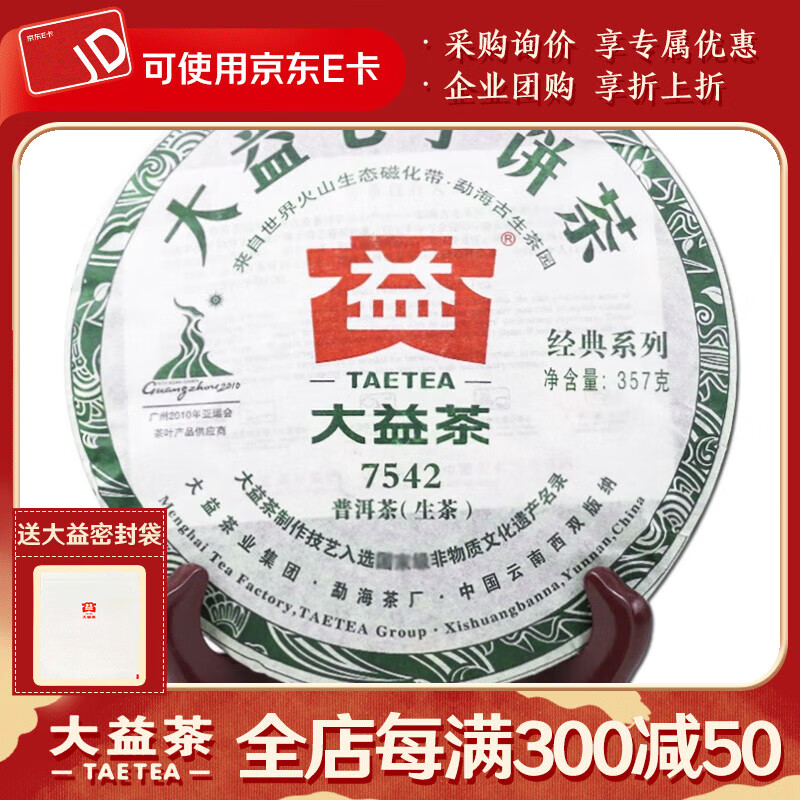 大益茶叶 普洱茶 7542 标杆生茶 随机批次 2010年357克*1饼