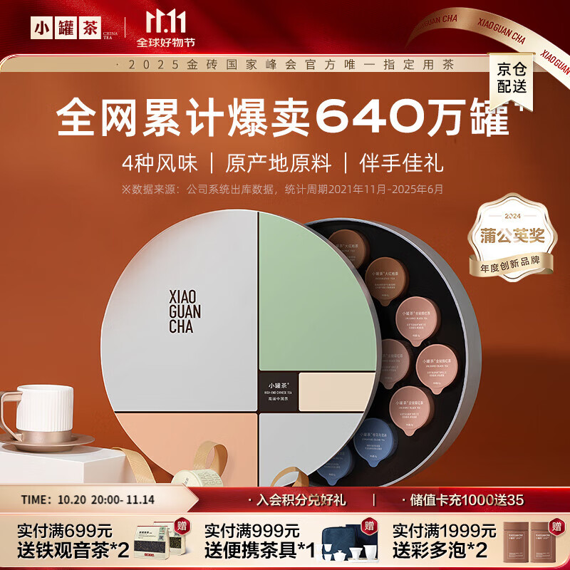 小罐茶 茶叶礼盒 莫兰迪彩罐16罐红茶乌龙茶 大红袍金骏眉节日礼盒 莫兰迪礼盒装4g*16罐