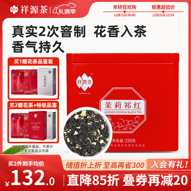 祥源茶 茉莉红茶 正宗横县茉莉花茶祁红香螺浓香型口粮 茶叶自己喝送礼 大份量半斤装250g
