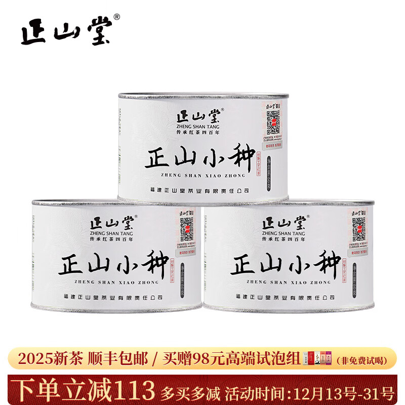 正山堂 正山小种红茶特级 2025新茶 武夷山桐木关茶叶罐装年货送礼礼品 50g3罐(3罐150克组合)