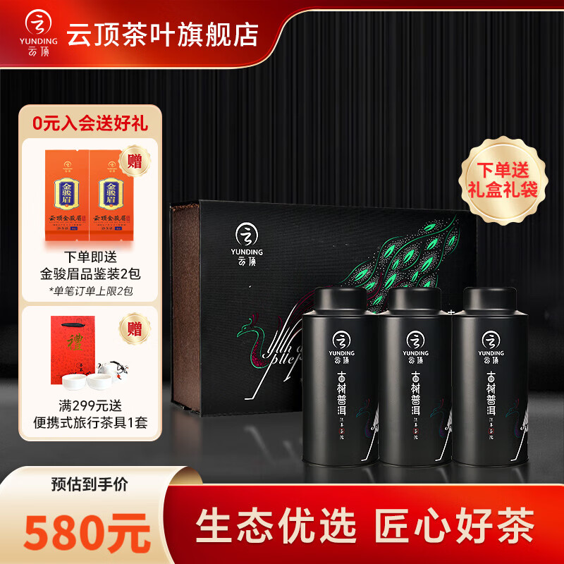 云顶(yunding)茶叶 普洱茶 熟普 古树茶沱 熟茶 礼盒装 送礼送长辈 100g*3罐