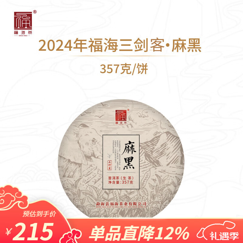 福海茶厂 2024年三剑客麻黑 357g茶叶云南七子饼普洱生茶生普