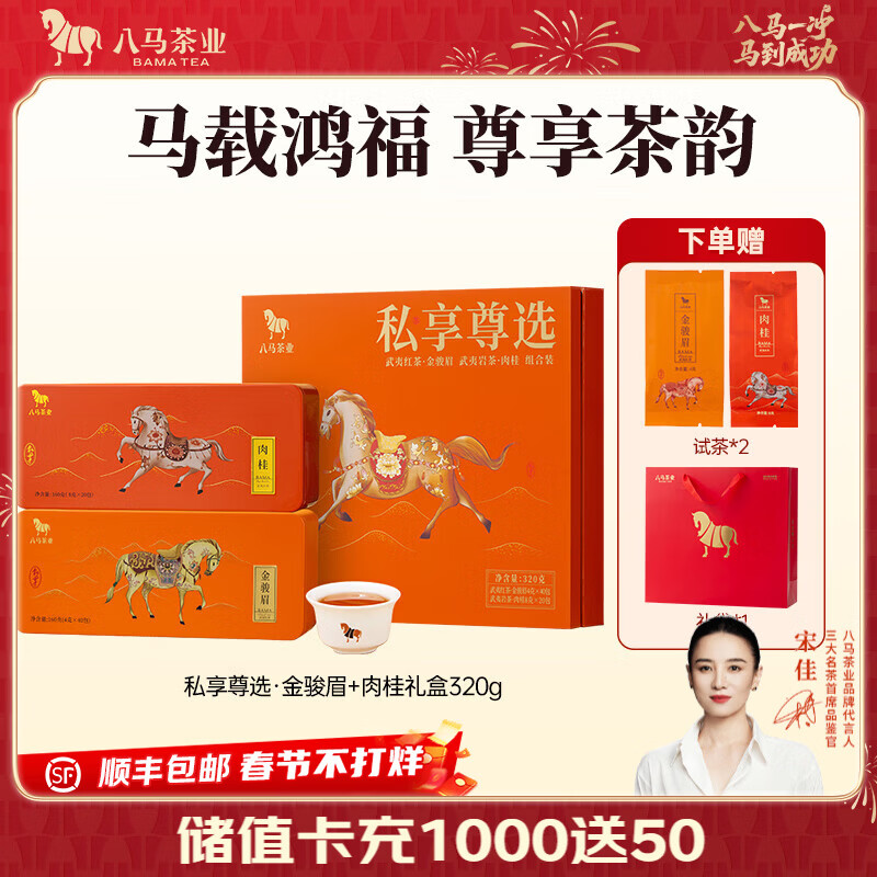 八马茶业 武夷山岩茶 肉桂 乌龙茶 茶叶自己喝 送礼盒装 送试茶+礼袋 【肉桂+金骏眉】礼盒320g
