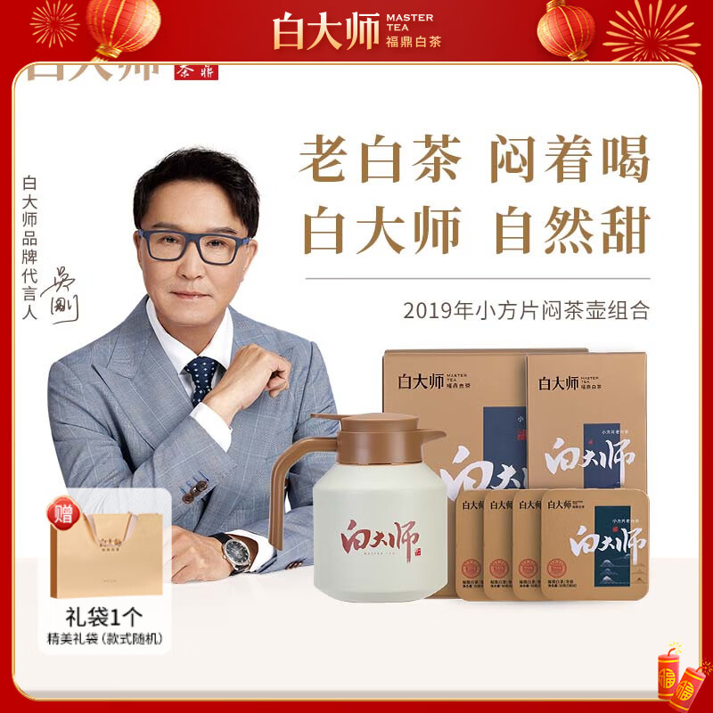 白大师白茶方片壶福鼎白茶闷茶壶闷泡壶2019年寿眉小方片120g茶叶礼盒