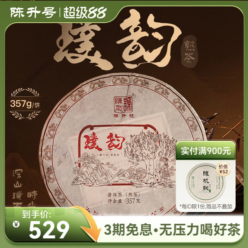 2024年陈升号普洱熟茶璞韵357g云南勐海普洱熟茶陈香浓郁茶饼茶叶