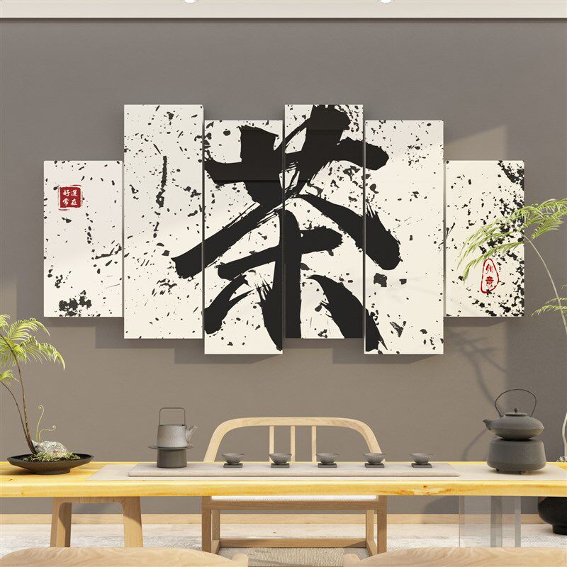 茶室馆背景墙装饰布置茶叶楼挂画摆件禅意文化软装网红打卡拍照区