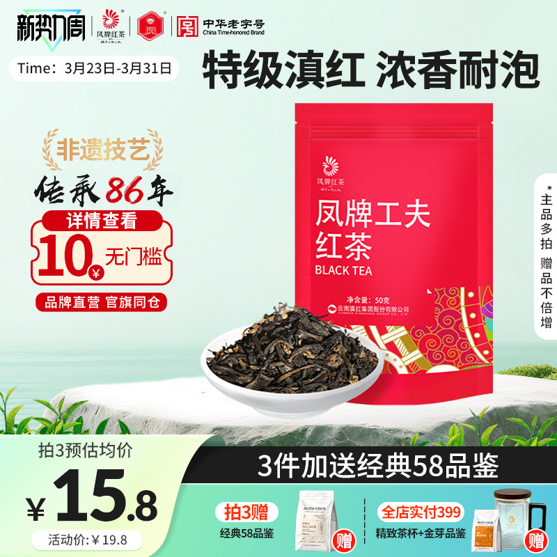 凤牌红茶正宗云南滇红茶叶特级浓香型试喝袋装50g口粮茶奶茶用