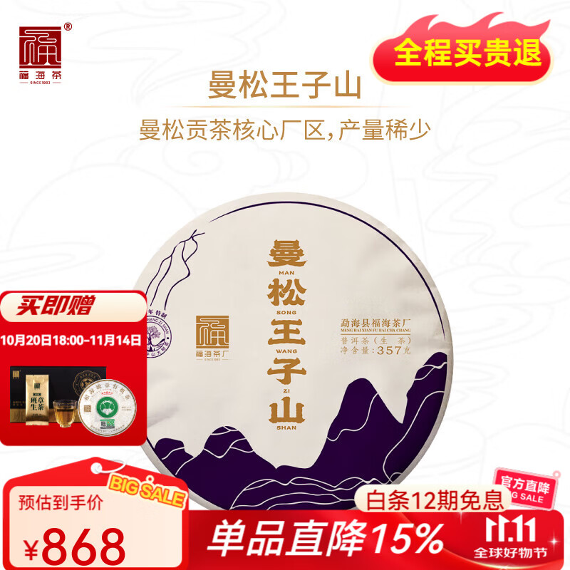 福海茶厂茶叶 普洱生茶2021年曼松王子山357g云南勐海七子饼 曼松王子山357g