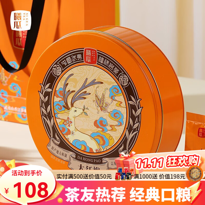 曦瓜(xigua)大红袍茶叶福禄大红袍岩茶乌龙茶武夷岩茶乌龙茶礼盒装128g 福禄大红袍 128g*1盒
