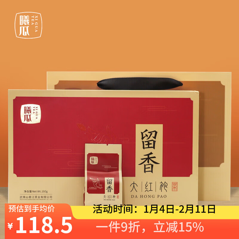 曦瓜乌龙茶留香武夷岩茶大红袍160g 中足火礼盒装 茶叶礼品年货节礼盒