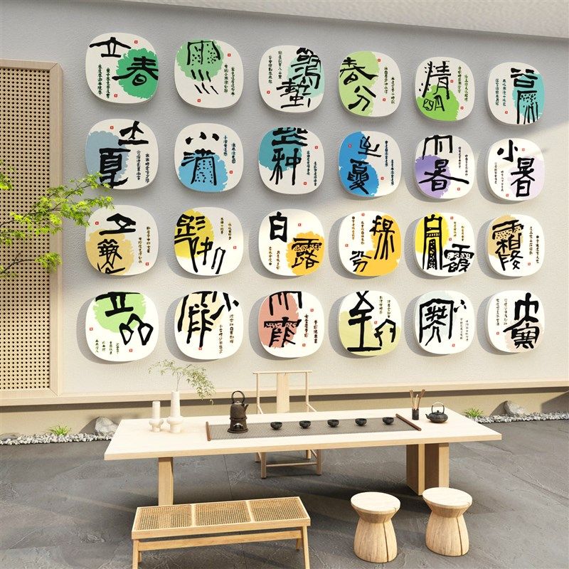 2二十四节气文化墙贴茶室布置背景装饰画摆件图面茶叶店桌楼馆