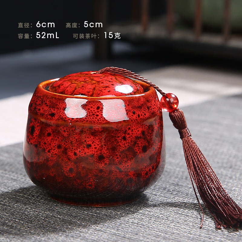 恩寿溯陶瓷便携旅行窑变小茶叶罐复古家用储存灌手迷你茶叶罐通用 红色 50克