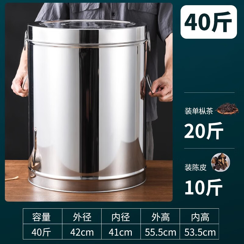 不锈钢陈皮储存罐茶叶桶大号米桶加厚存放密封罐茶叶储存陈皮桶 40桶约装炒茶40斤粗叶20斤陈皮10