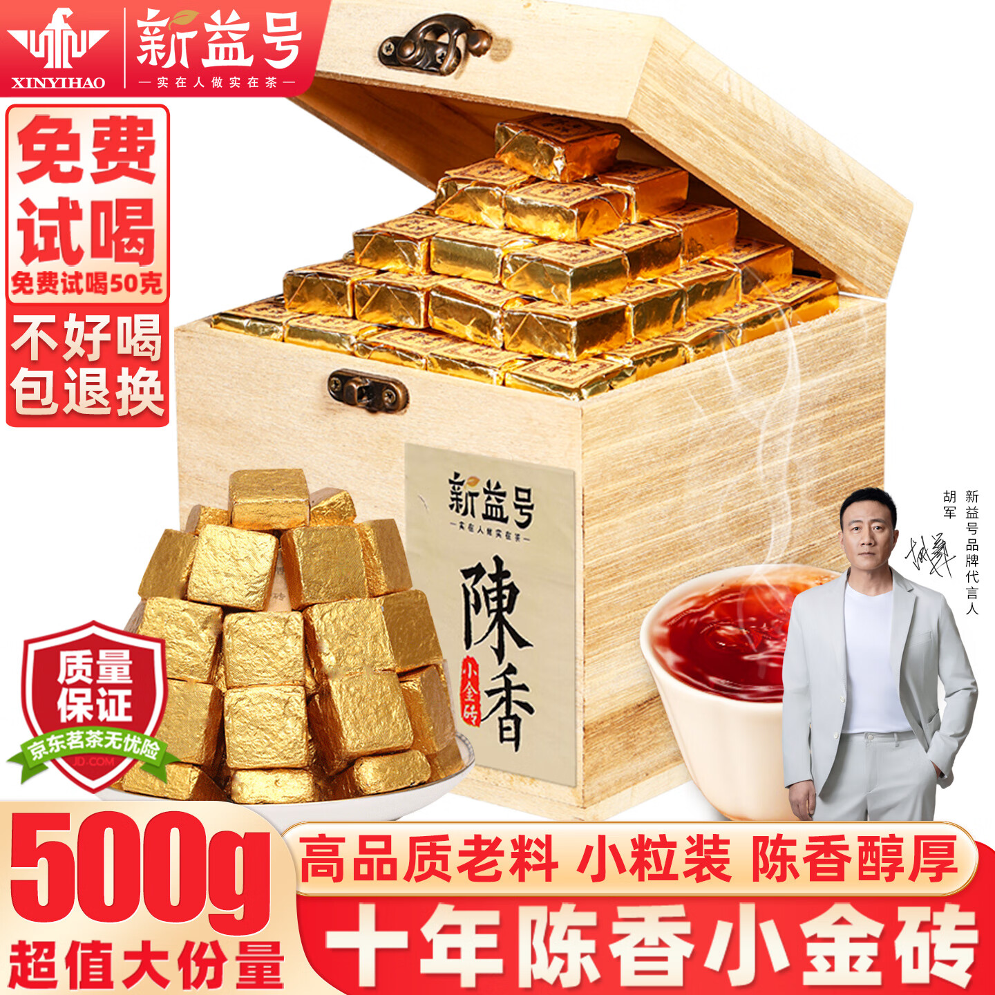 新益号云南勐海陈年普洱茶熟茶十年以上迷你小沱茶叶陈香小金砖熟普洱茶 爆款推荐【十年陈香小金砖】500克*1盒