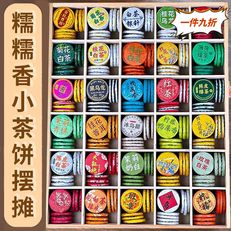 胖东来同款糯糯香茶套餐拿货抖音摆摊网红小茶饼陈皮糯米普洱茶叶 【一饼一颗】独立包装 袋装:30种小茶饼+特级精选