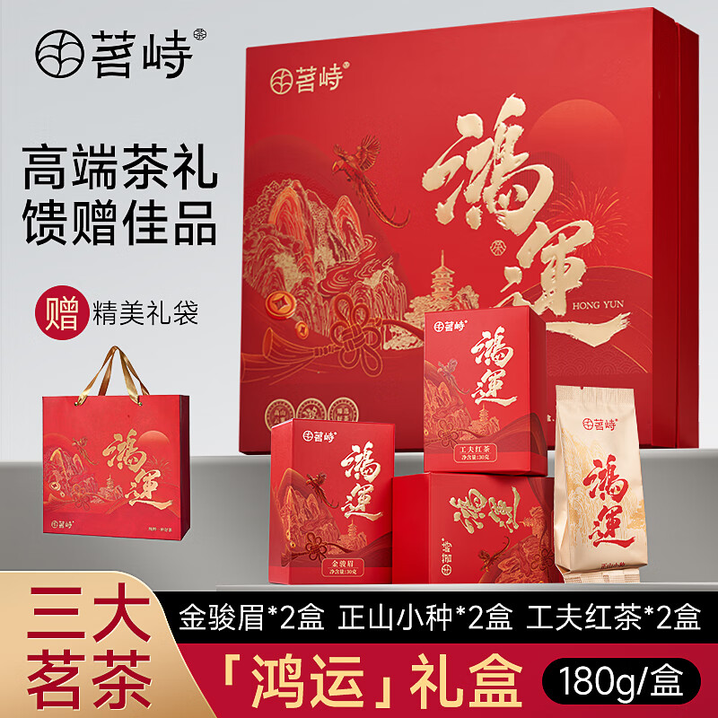 峻山野茗峙特级金骏眉正山小种工夫红茶叶礼盒装节日送礼自己喝180g长辈 鸿运礼盒—金骏眉+正山小种+工夫红茶