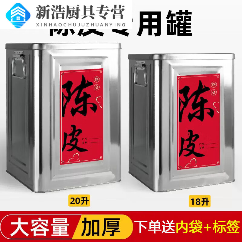 百圣牛陈皮储存罐大容量马口铁大号密封茶叶铁桶收纳存放收藏果皮铁罐桶 双盖加厚[配内袋+标签]3 20L