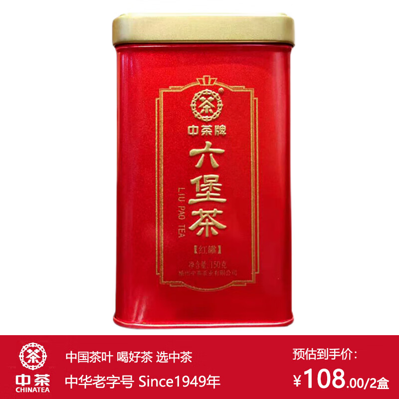 中茶牌茶叶 广西梧州六堡茶 红罐铁罐装2019年陈化一级窖藏黑茶 2021年 单罐装150克 * 1罐
