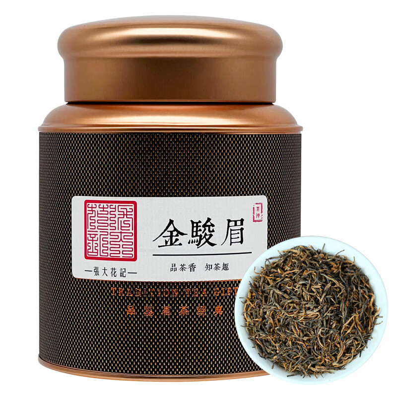 張大花記金骏眉 红茶 茶叶 蜜香型 福建红茶 精美罐装 黑罐金骏眉-1罐 250克