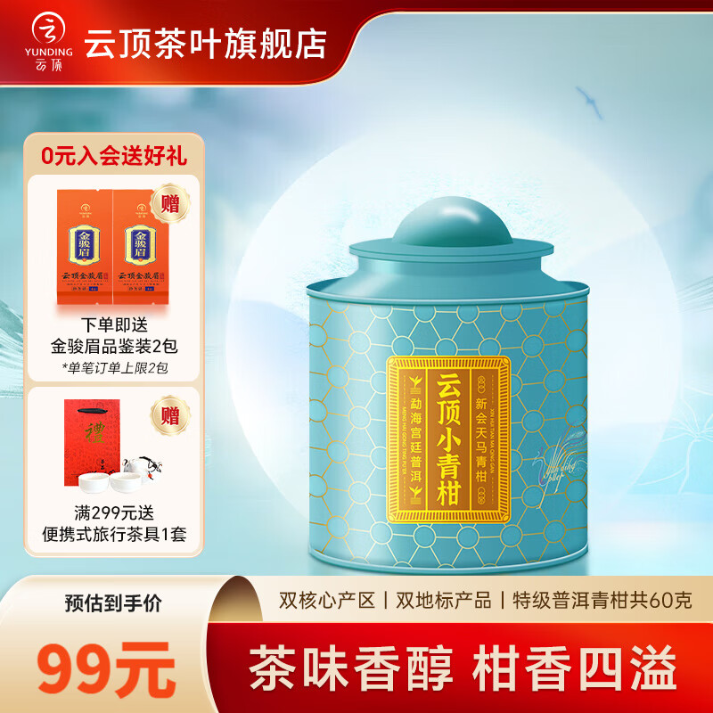 云顶小青柑 新会2017年青柑及云南勐海古树乔木2012年宫廷普洱熟茶叶 罐装60g