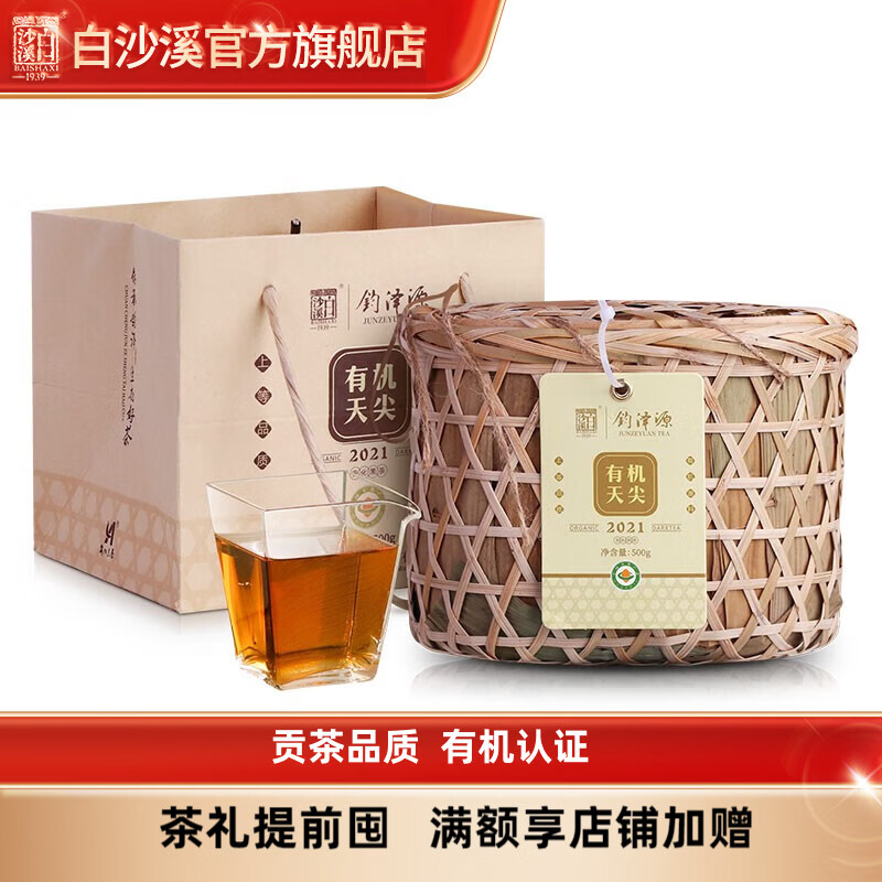 白沙溪 钧泽源有机天尖茶叶500g湘尖湖南安化黑茶 2021年有机天尖