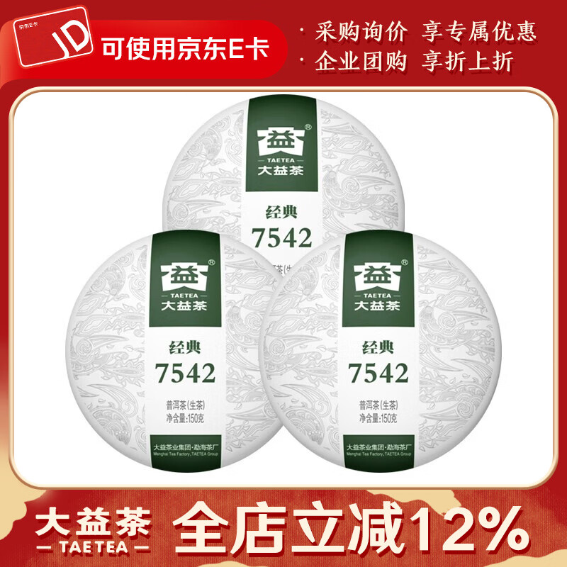 大益茶叶 普洱茶 经典标杆小饼茶 口粮茶 150g/饼 经典7542生茶3饼