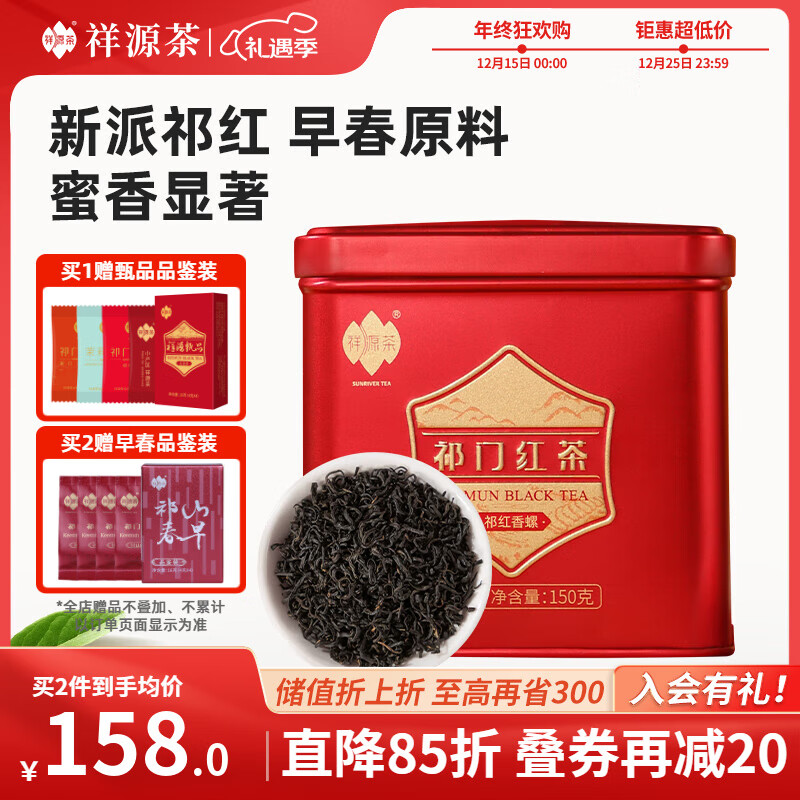祥源茶 祁门红茶 特级甄品早春祁红香螺甜花香口粮茶 2025新茶叶自己喝 罐装150g