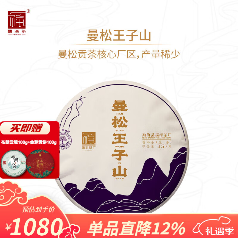 福海茶厂茶叶 普洱生茶2021年曼松王子山357g云南勐海七子饼 曼松王子山357g