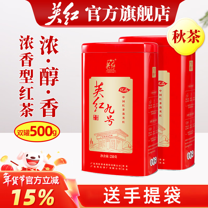 英红牌英红九号浓香型红茶优品秋茶红色双罐装共500g自饮年货节日茶礼