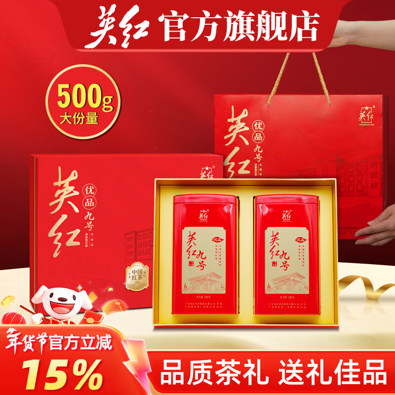 英红牌英红九号红茶浓香型优品红双罐礼盒500g高档茶叶礼盒年货送礼