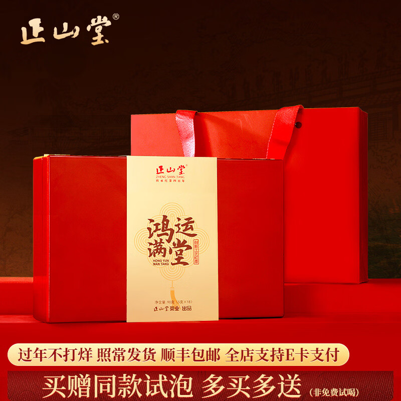 正山堂正山小种红茶特级 茶叶礼盒装鸿运满堂 2025新茶武夷山年货送礼 90g1盒