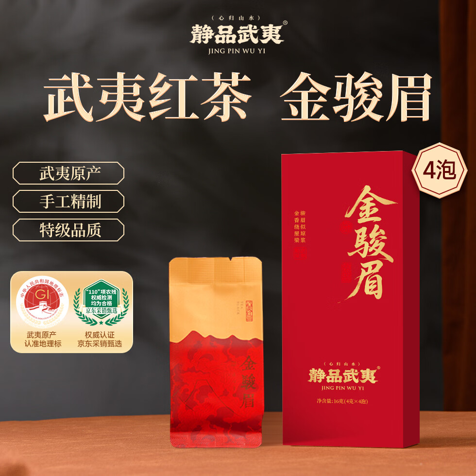 静品武夷红茶乌龙茶叶武夷原产特级金骏眉岩茶茶叶年货礼盒礼品送长辈老人 【试饮装】特级金骏眉16g/4泡