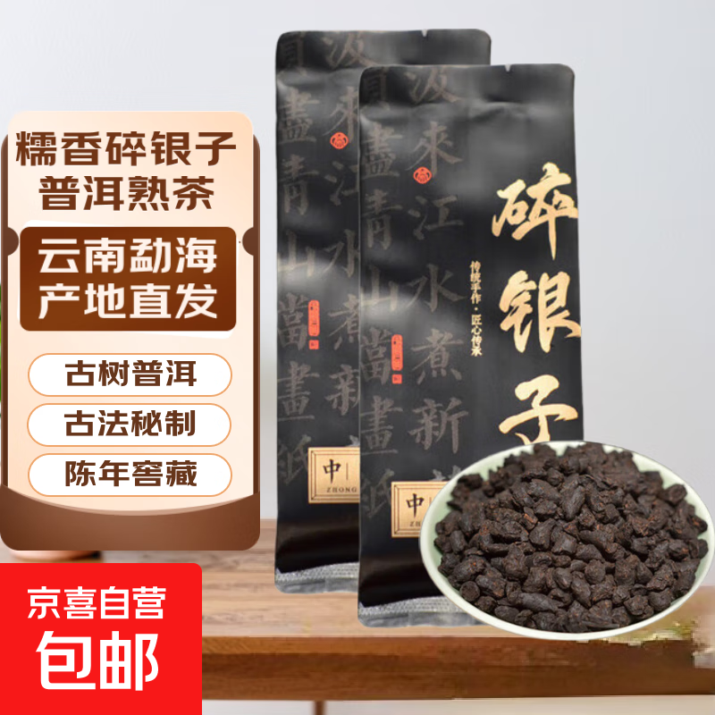 正宗云南普洱茶熟茶糯米香碎银子云南普洱茶化石老茶头浓香型茶叶 糯香碎银子10克*5袋