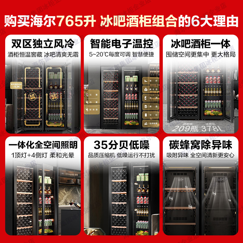 【海尔新品】海尔冰吧酒柜378L风冷无霜展示柜茶叶水果饮料冷藏柜