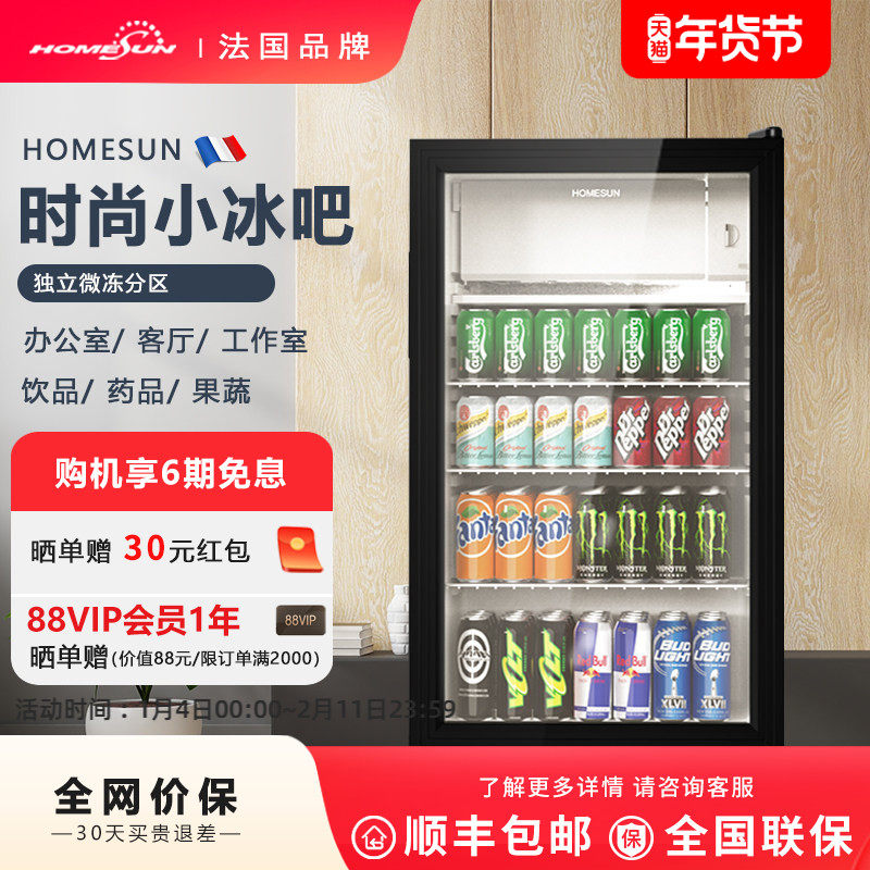法国Homesun家用客厅冰吧办公室透明小型饮料茶叶冷藏单门小冰箱