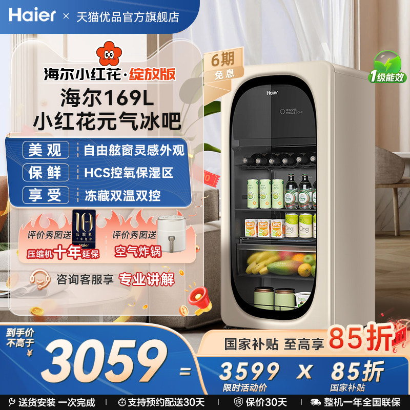 【新品】海尔小红花169L元气冰吧小型冷藏保鲜家用茶叶饮料柜冰箱