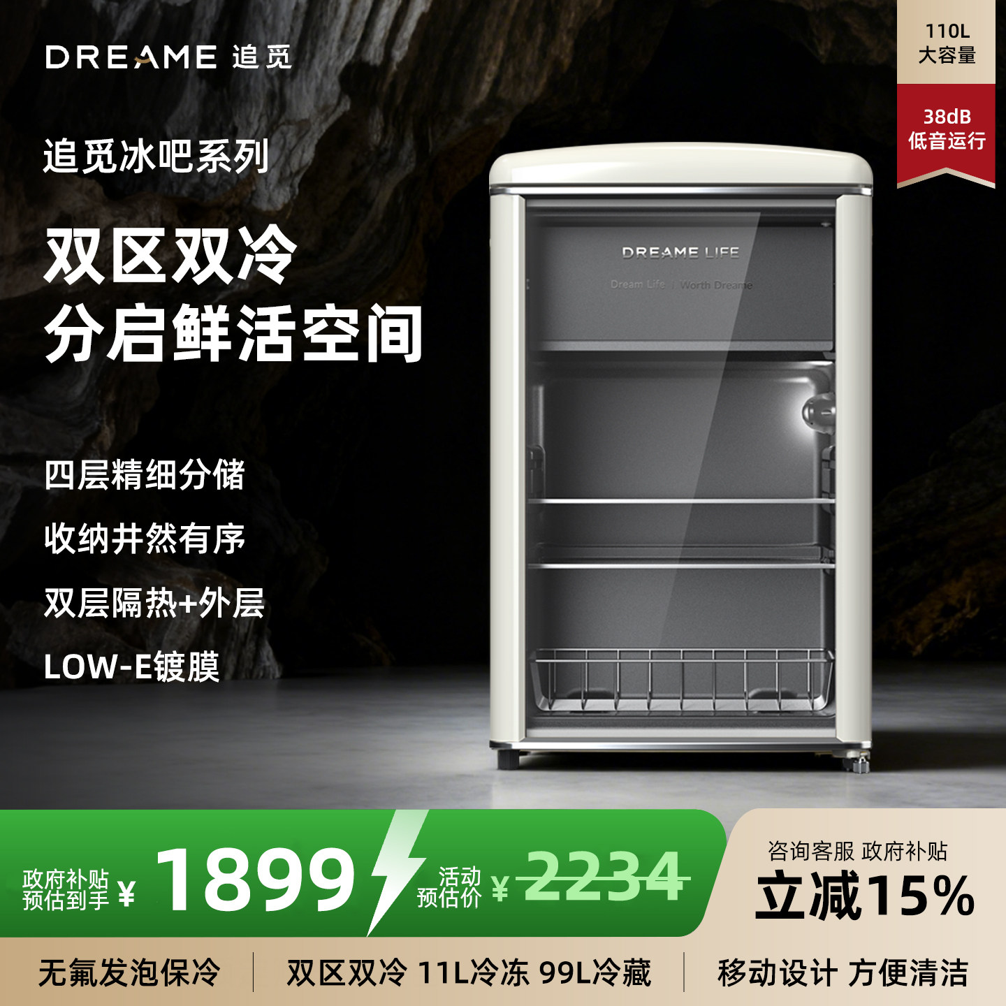 追觅110升冰吧家用冷藏柜小型办公室冰箱茶叶酒店展示柜饮料柜