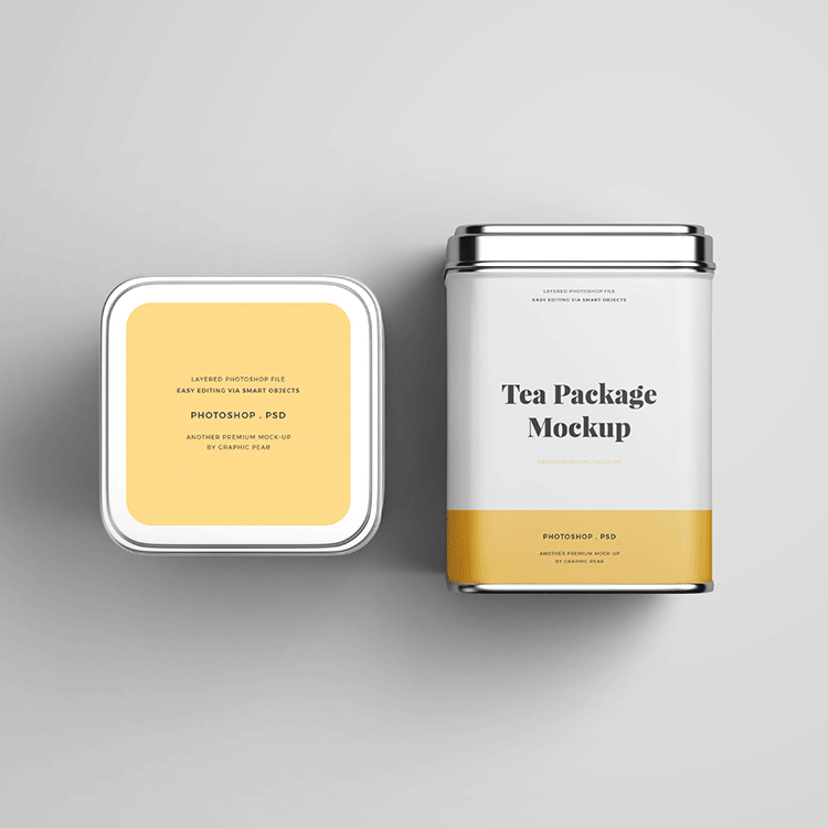 高品质茶叶食品金属罐锡罐包装盒样机mockup设计 psd智能贴图素材
